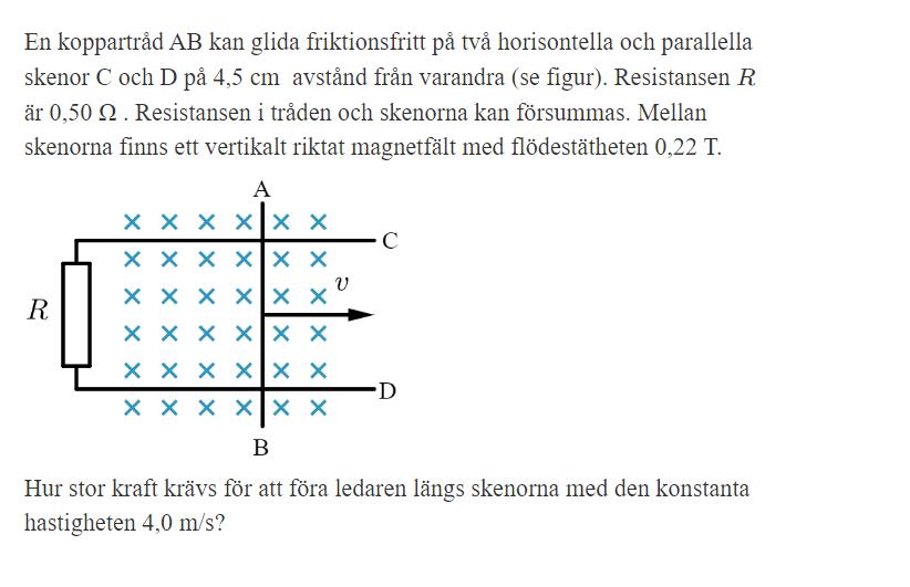 Det är väl hastigheten som orsakar ändring i arean som flödet passerar genom, och därmed inducerar en spänning över ledaren? Hur kan det vara kraften som orsakar hastigheten, när kraften beror på en ström som beror på en spänning som induceras av rörelsen?