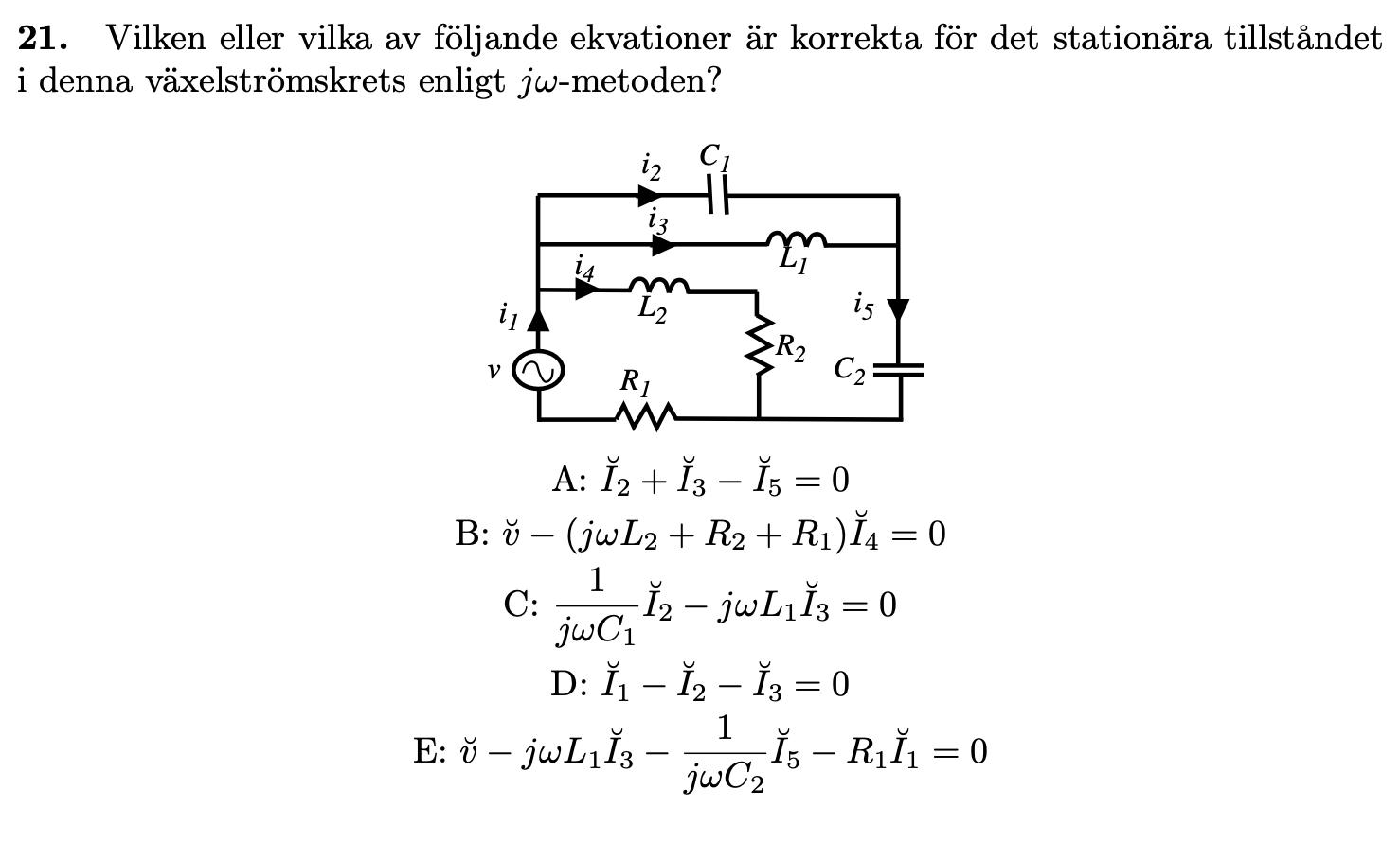 Såg nu att strömmen genom R1 inte är I4, därmed stämmer inte påstående B.