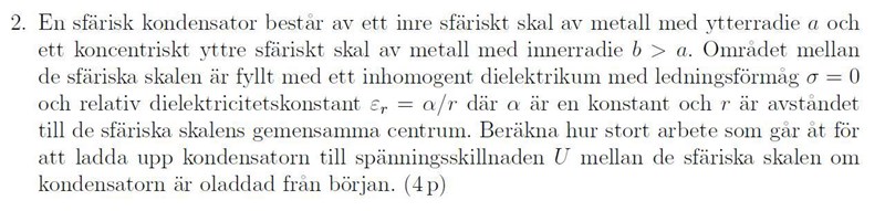 Här är en tentauppgift där man i lösningsförslaget använder att E=D=0 utanför den yttre sfären.
