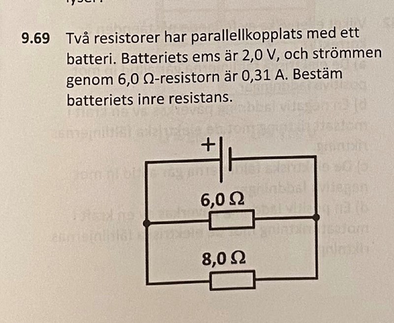 Hej, jag har helt fastnat och förstår inte hur jag skall lösa denna fråga? Tacksam för hjälp :). Svaret är 0.26 Ohm.