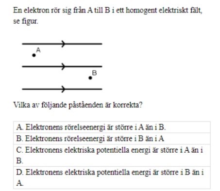 Hej! Jag funderar över en sak kring denna uppgift: Kommer elektronens potential att öka för att den går mot - (försöker övervinna de repellerande krafterna) eller minska för att den går med fältlinjerna (trots att andra sidan är negativ)?