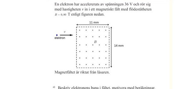 I början verkar kraften nedåt, men den verkar hela tiden vinkelrätt mot rörelseriktningen, så elektronen går inte i en linje snett neråt, utan i en cirkelbana.