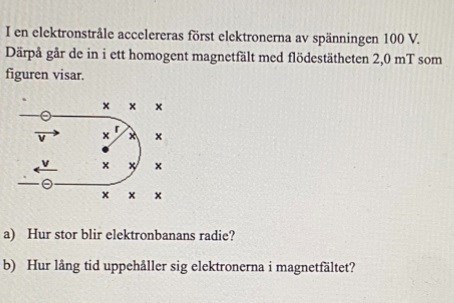 Ture skrev:eftersom du vet accelerationsspänningen kan du beräkna tillförd energi till elektronen, den energin blir rörelseenergi som sen ger dig hastigheten.