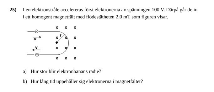 Hej! Jag har gjort a) men inte b). Ska jag använda mig av t = 2pi/v? För jag får inte rätt när jag använder den.