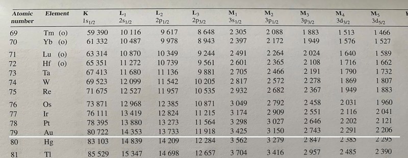 jag har följande tabell tillgänglig, är det alltså M2 på 3150 eV i det här fallet? :)
