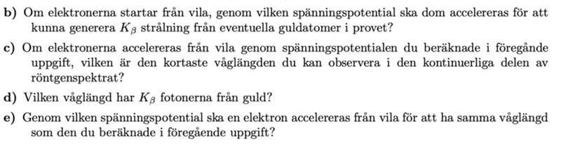 Vi har en inkommande elektron som exciterar elektroner i guldatomen från K-skalet till en 3p-orbital. Denna elektron emitterar sedan -strålning när den faller tillbaka från M1 till K.