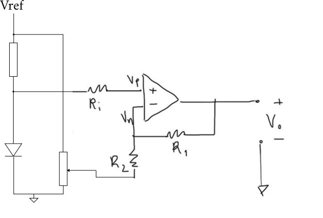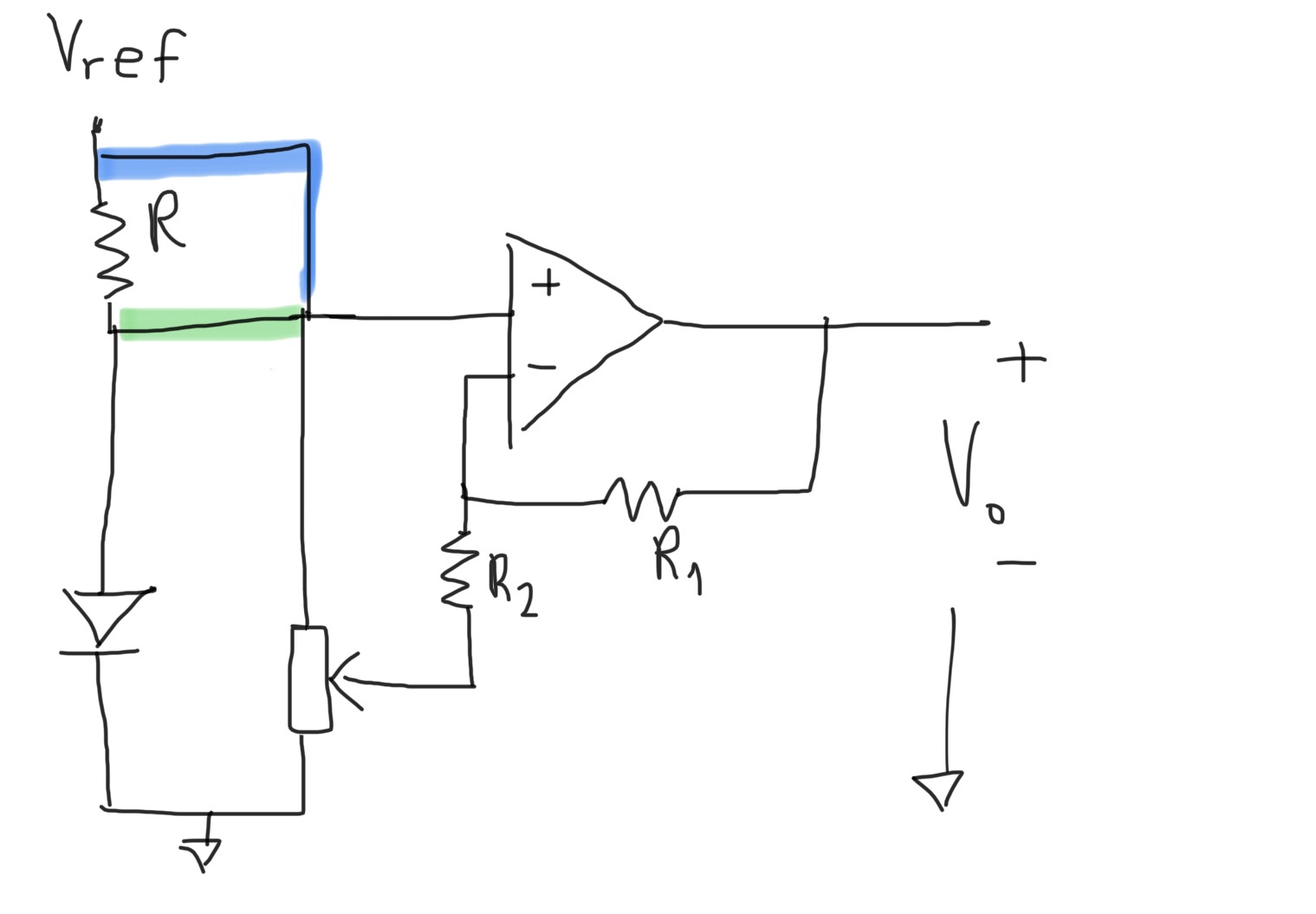 - Motståndet närmast Vref i din krets ser ut att vara kortsluten. Varför? Ska det inte gå ström genom motståndet?