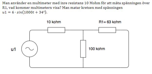 jag har fastnat på följande fråga nedan. Det första som jag inte riktigt förstår är hur man ska räkna med när inspänningen är skriven på det sättet som det är. Tacksam om någon skulle kunna förklara.