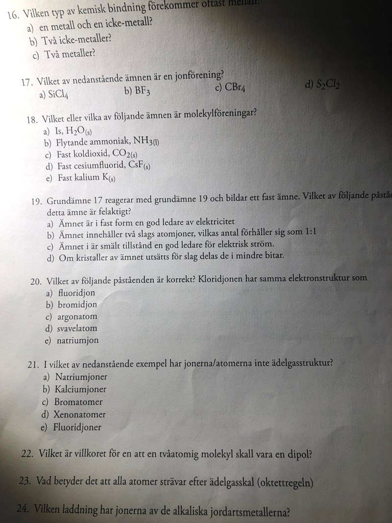 Mitt svar är att fluoridjonen,bromidjonen, argonatomen (den har 8 valenselektroner) . Men det är fel enligt facit. Varför är det fel?
