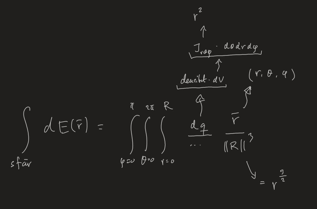 Om du vill utvärdera fältet i så får du ett infinitesimalt bidrag till fältet från en liten volym dV med laddning lokaliserad i enligt