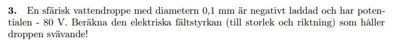 Elektrostatik: elektriskt fält som håller laddad vattendroppe svävande