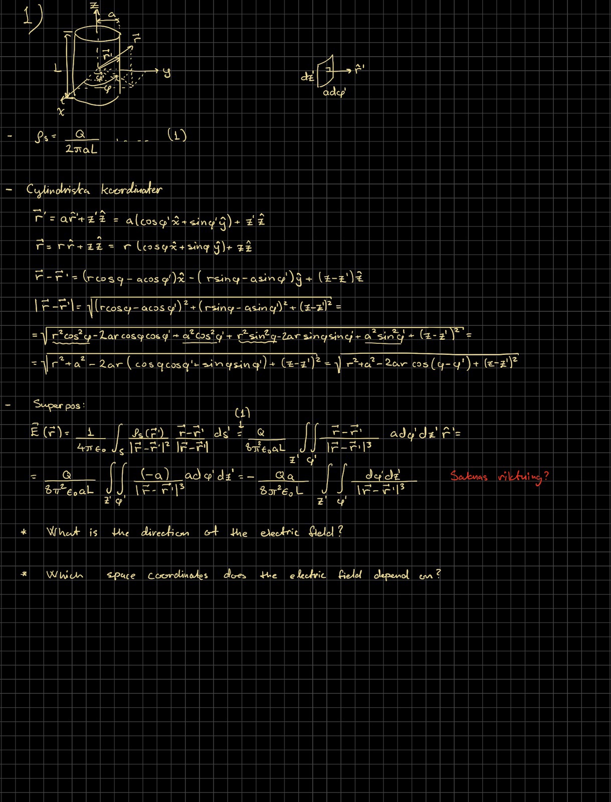 Det måste väl finnas en z komponent då cylindern ej är oändligt lång (den har längd L).