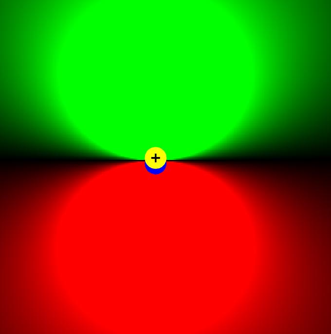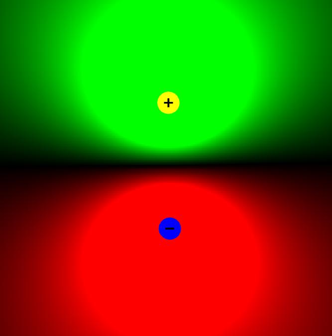 På långa avstånd och på en cirkel runt dipolen varierar potentialen med endast vinkeln (cos(t) faktiskt). Detta är ett beteende som inte en singelladdning uppvisar på något avstånd (vare sig nära, medelnära eller i ändligheten). Det är viktigt att avståndet mellan laddningarna är försumbar, för annars: