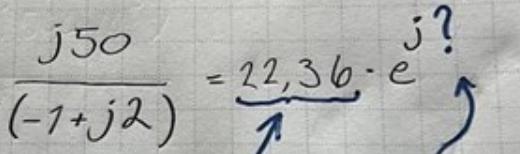 Ja nu fick jag ut det! Tack så mycket för hjälpen. Något jag inte hänger med på dock är varför det inte gick att få fram vinkeln direkt med j50/(-1+j2)