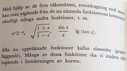 ConnyN skrev:Sök på icke elementär funktion så ser du att på gymnasiet blir det inte aktuellt med annat än elementära funktioner och just årskurs två tar upp en hel del grunder i just elementära funktioner.
