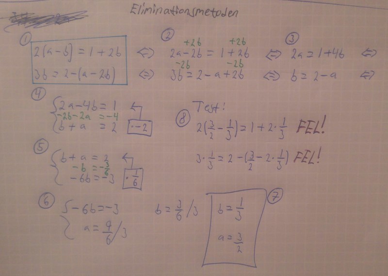 Tacksam för lite vägledning, jag har kört fast ett antal gånger nu med denna. Jag ska använda mig utav eliminationsmetoden som jag inte riktigt bekantat mig med ännu.