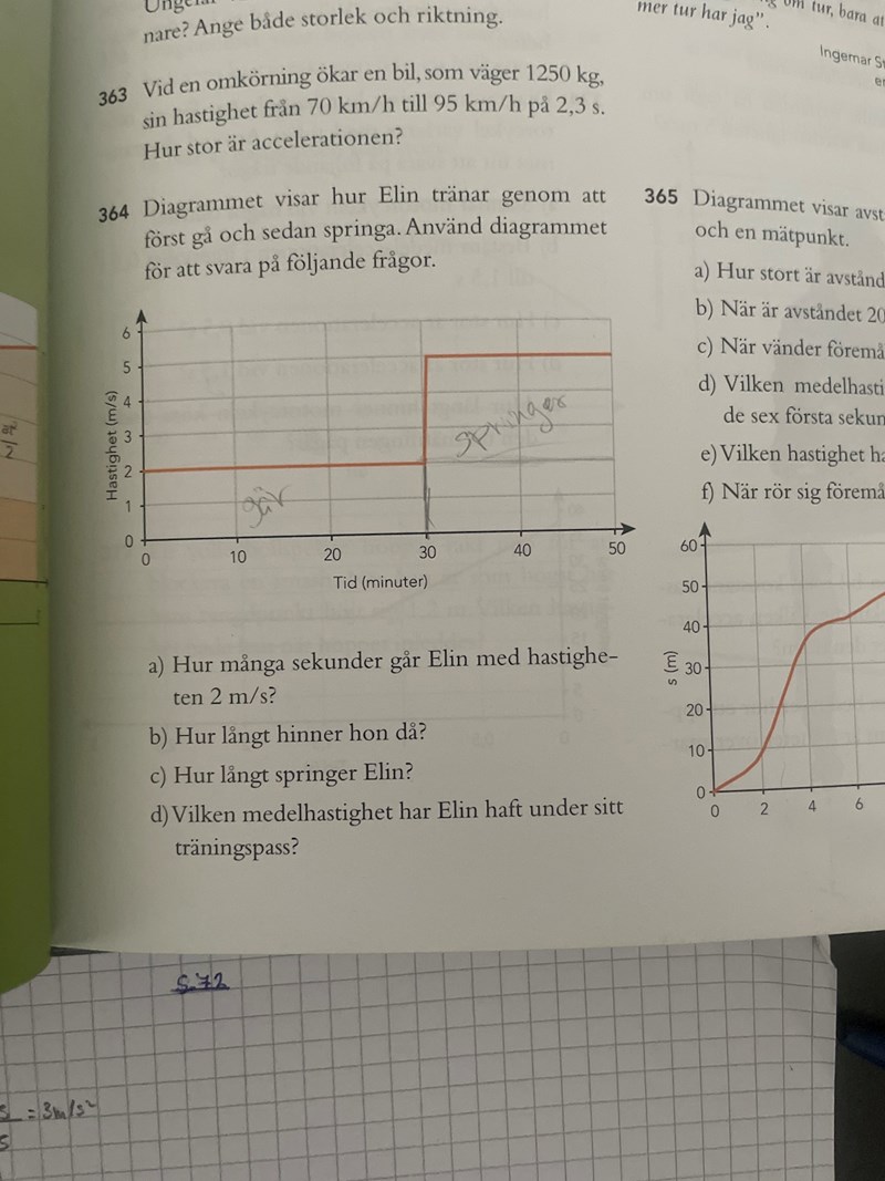Jag fattar inte hur jag ska räkna ut c, hur långt hon har sprungit jag provade att räkna 20 min till 720 sekunder och sedan ta 720*5 vilket gav fel svar