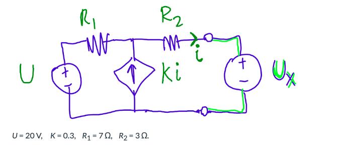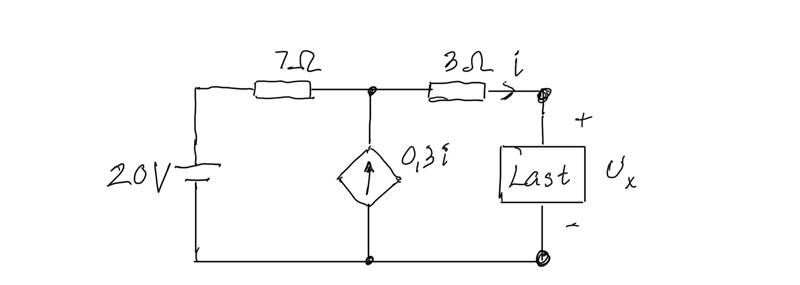 Uppgiften går ut på att beräkna den maximala energin som tillförs Ux. Jag förstår att man ska göra KCL för noden Ux och sedan jämföra uttrycket för Ux med formeln för en Thevenin source: