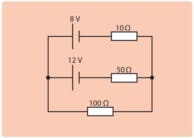 Johan kopplar upp kretsen nedan. Visa att det inte kommer att gå någon ström genom 10 Ω-motståndet.
