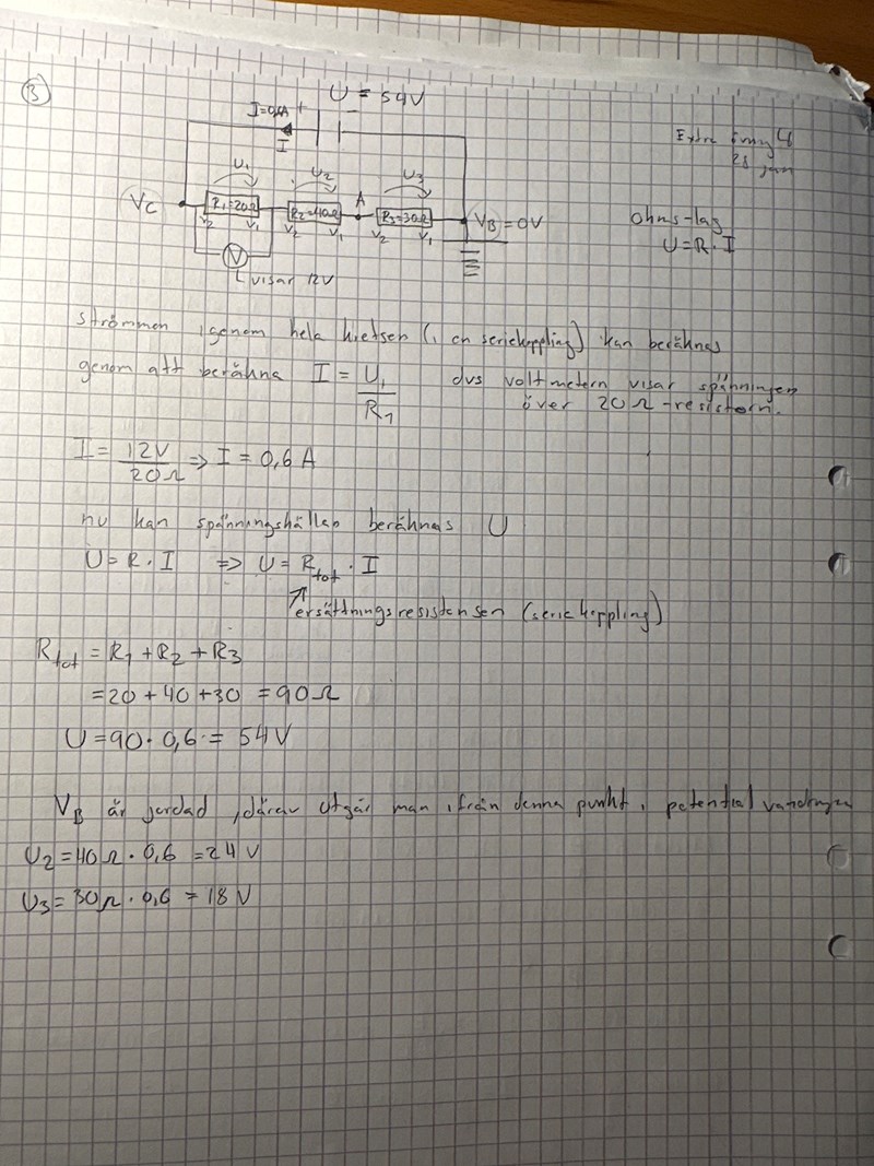 Kan du räkna ut strömmen genom 20 ohms resistorn med formeln  I=U/R?