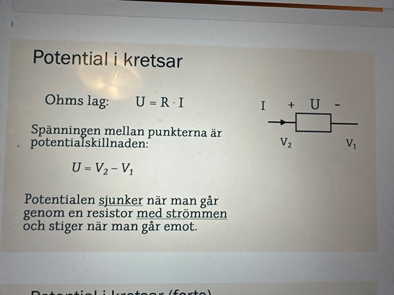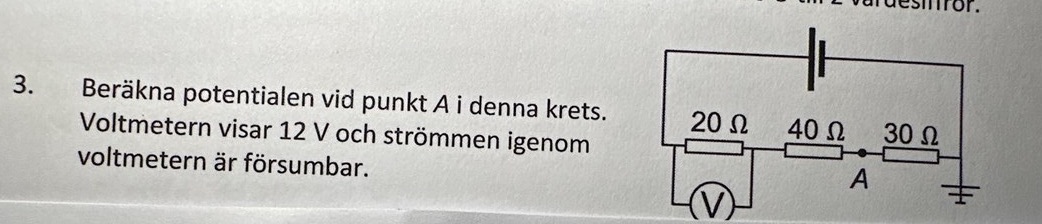 Mäter volt metern spänningen U över 20-resistorn?
