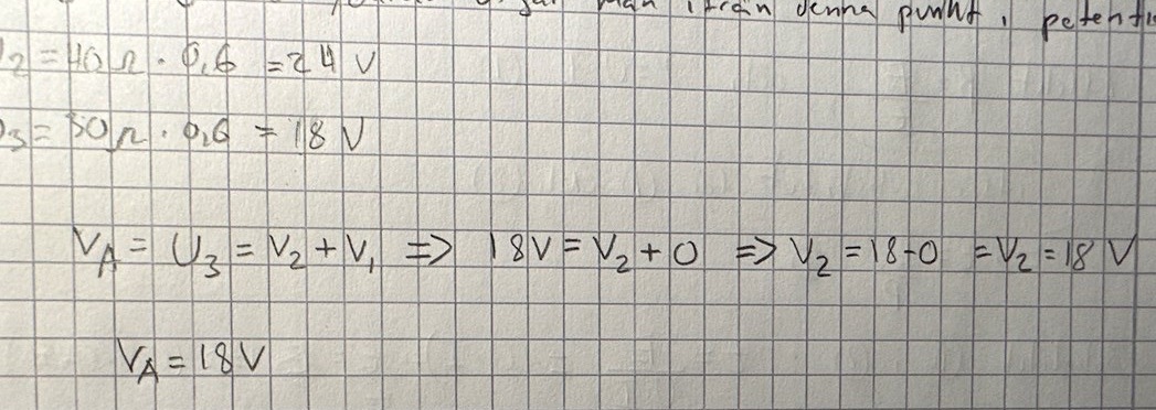 Potentialen i den sökta punkten är alltså +18V.