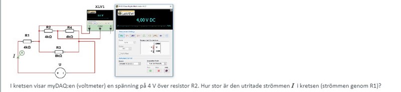Räkna ut strömmen genom R2, strömmen genom R4 är lika stor (samma ström).