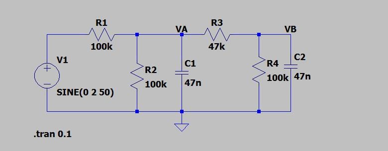 Jag försöker räkna ut fasförskjutningen i VA och VB jämfört med V1, men får det inte att stämma.