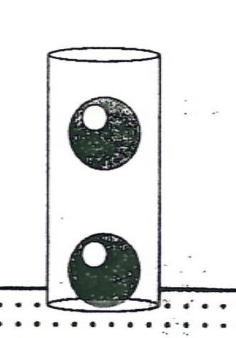 Två identiska kulor som båda väger 29 mg laddas upp så att vardera kula får laddningen 2,5 nC. Därefter placeras kulorna i ett smalt rör av glas. Den ena kulan svävar fritt i luften en bit över den andra. Bestäm avståndet mellan kulorna.