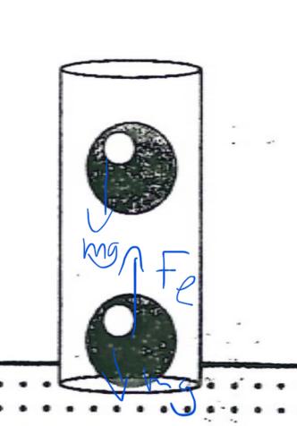 mg = fe pga att den övre kulan ej rör sig upp eller ner ?