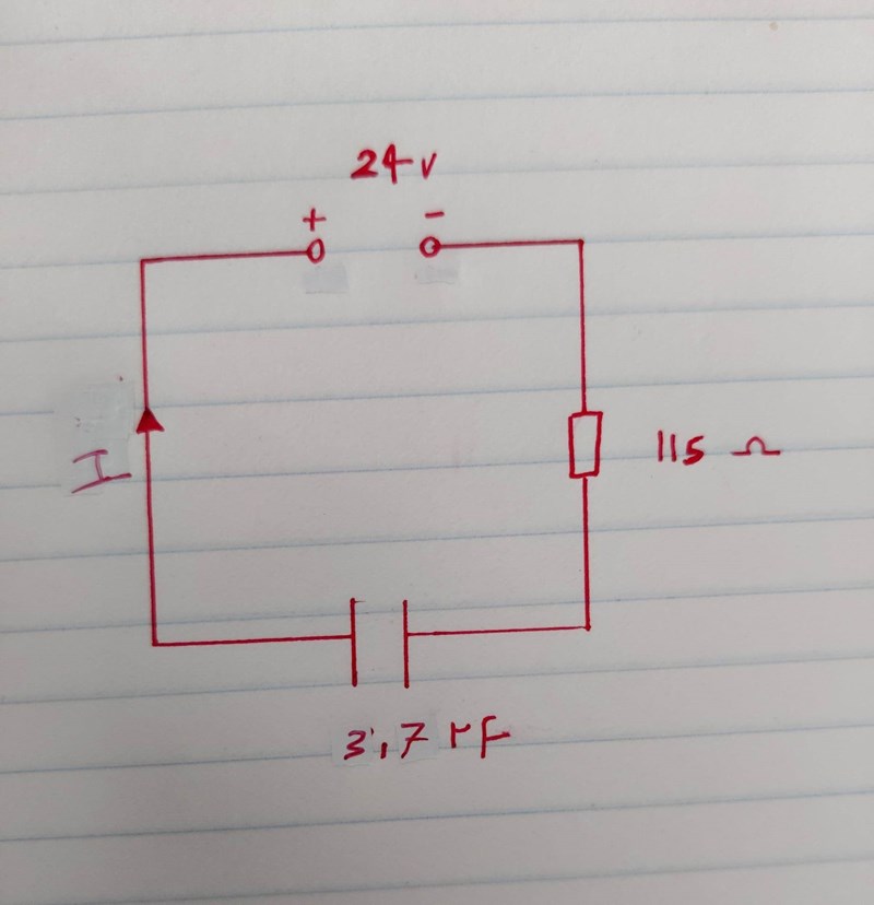 Här tänkte jag använda I= U/ R * e^ t/ RC → I= 0,20 A