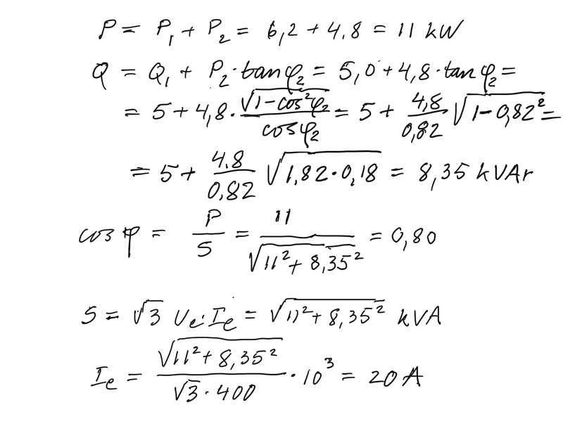 Detta ger dig storlekarna på motorströmmarna. för varje motor får man från reell och reaktiv effekt i uppgifttexten.