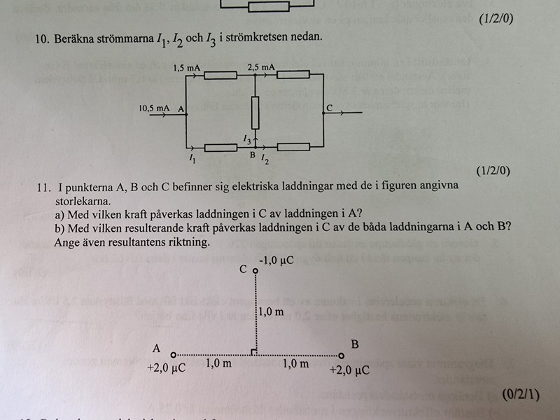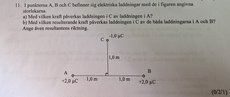 Jag räknade ut kraften mellan A och C, och B och C. Den fick jag till -0,009 N.