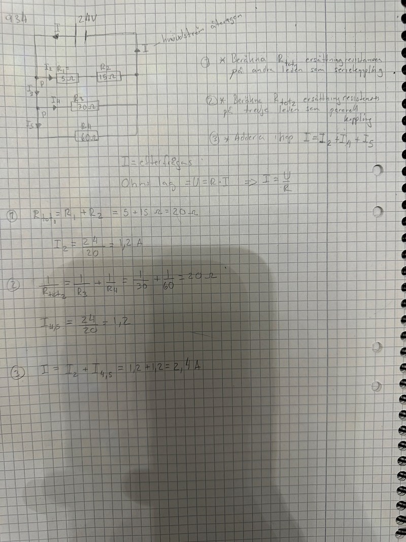 Sedan skulle jag kalla strömmen genom R3 för I3 . Samma index/suffix alltså. Det blir lätt att tänka fel när I4 är strömmen genom R3.