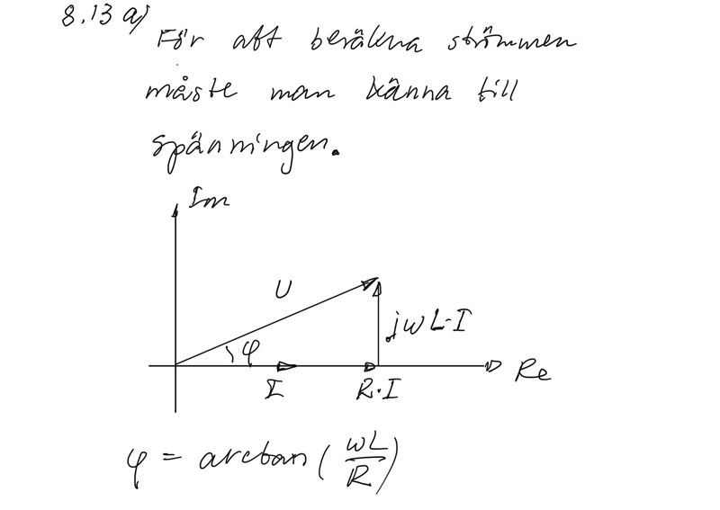 Hej! Kan någon hjälpa mig med uppgift 8.13? Jag förstår inte hur det är möjligt att räkna ut fasförskjutningen med endast de givna värdena? Lyckas dock att räkna ut impedansen.