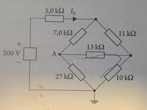 Potential i punkt A? : 27kΩ * 3.78mA = 102.06 V (102 V enligt facit)