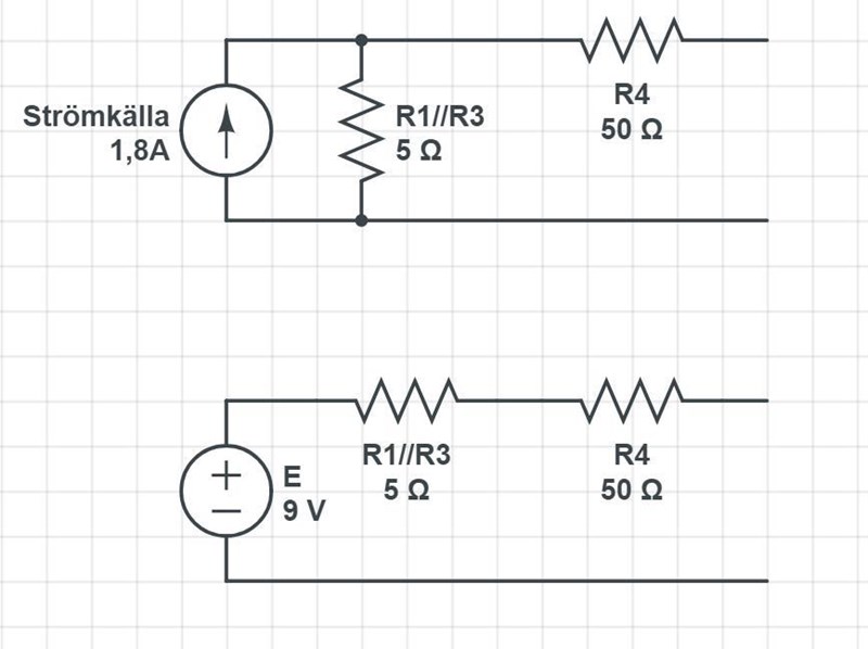 somsofia skrev:Alan123 skrev:somsofia skrev:Alan123 skrev:Du kan skriva om hela den vänstra kretsen till en ekvivalent krets som liknar den till höger.