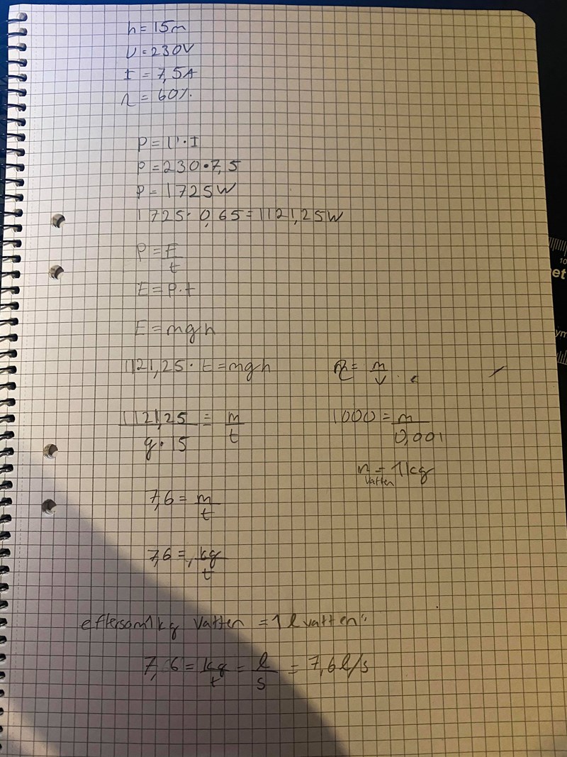 1121,25= E/ 60min (då den frågar om hur många liter per min)