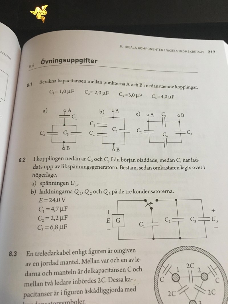Har fastnat på uppgift 8.1; vet att formeln är c=vänd 3 (permittiviteten) x A/d . A=area, d = avståndet mellan elektroderna i m. Om någon vet hur jag ska använda formeln så skulle jag vara väldigt tacksam.