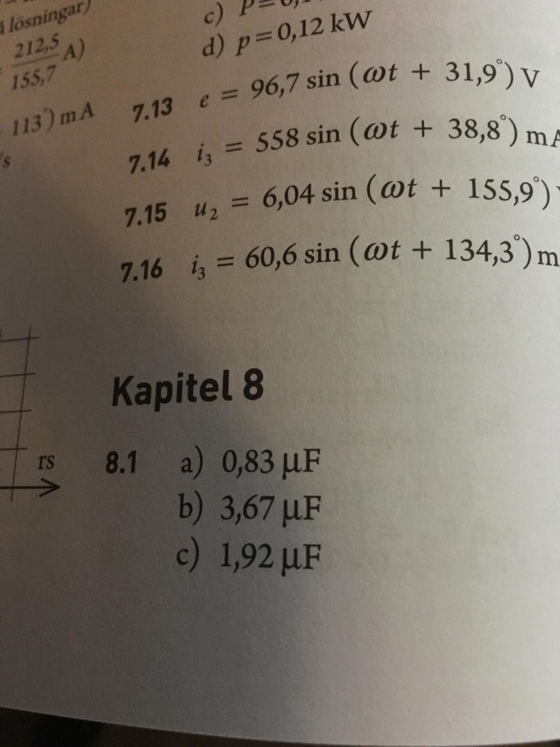 På b så tog jag 2+5 för att de är parallella men ska jag addera de genom att göra det jag alltid gjorde för att addera parallella punker/saker? 2x5/2+5? som blir 1.42, men du sa att jag bara ska addera de med c istället för att opcksp addera det med 1. Men hur ska c1 vara med ? för 1/1.428 eller 1.428/1 är inte 3,67 uF. Så om du har några tips där så skulle jaga vara tacksam.