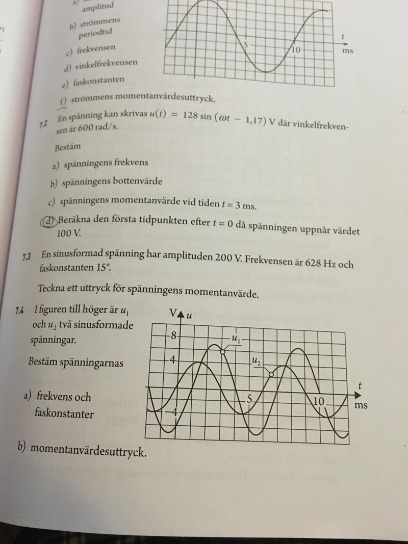 Ellära- Hjälp med att bestäma spänningarnas frekvens,faskonstanter och momentvärdesuttryck