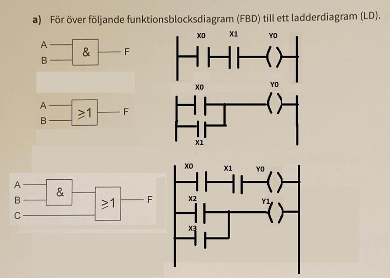Är det inte lämpligare med A, B och F?Symbolen vid t.ex. X0 och X1 kan du tänka dig som strömbrytare.