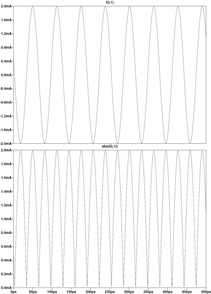 Absolutbelopp, RMS och medelvärde är olika saker. RMS blir ju för en sinusformad ström, medelvärde blir noll och absolutbelopp ser ut så här: