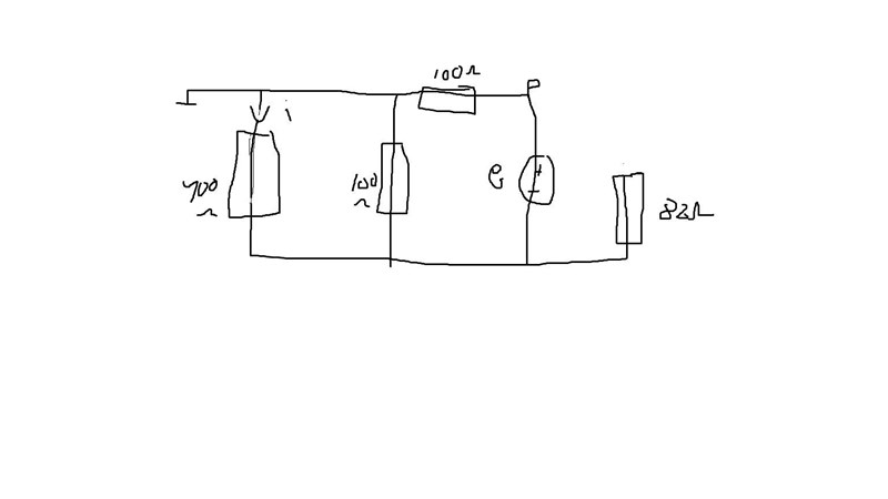 Jag har p = 20V , r1= 100, r2= 100 och r3= 400 och r4 = 82 och jag ska beräkna strömmen i.