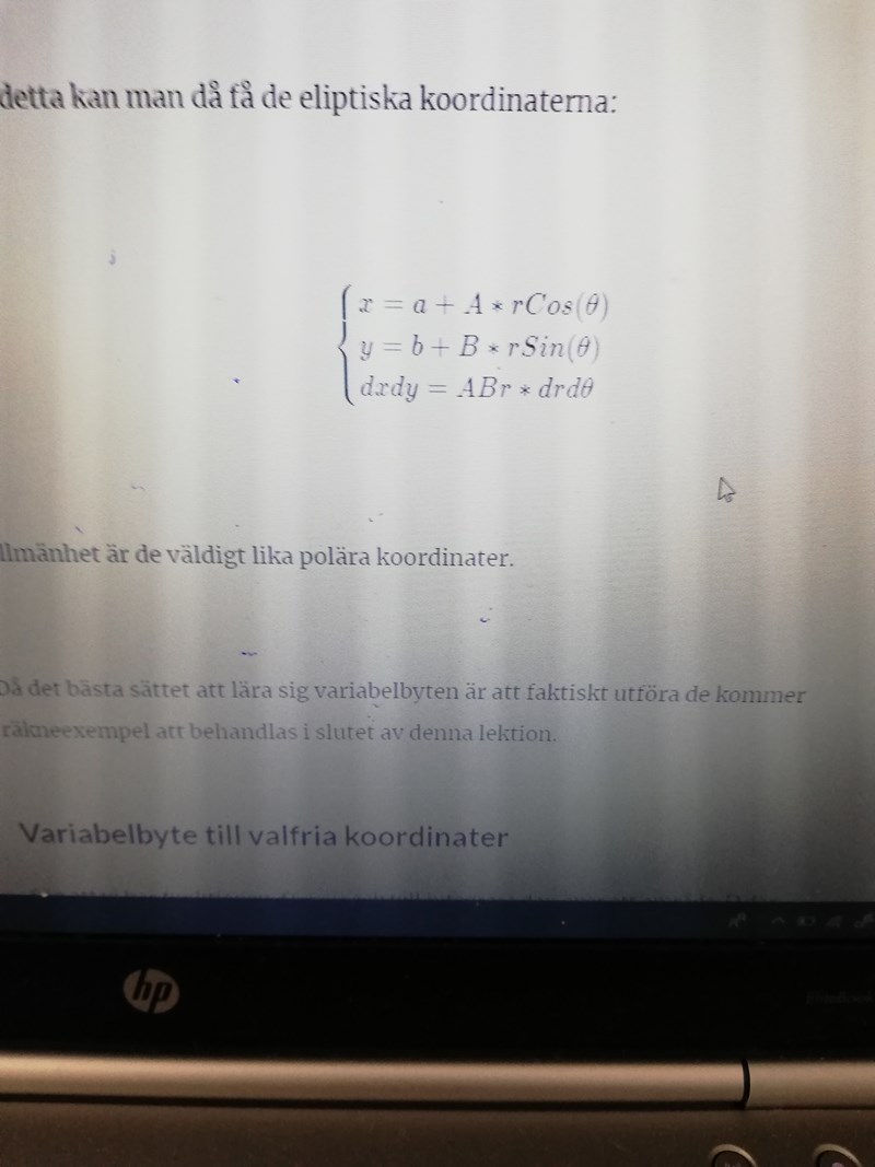 hej, jag undrar på värför för vi y=sqrt(2)rsin och inte x lik sqrt(2), eftersom det är x som har halvaxeln sqrt(2). Och inte y