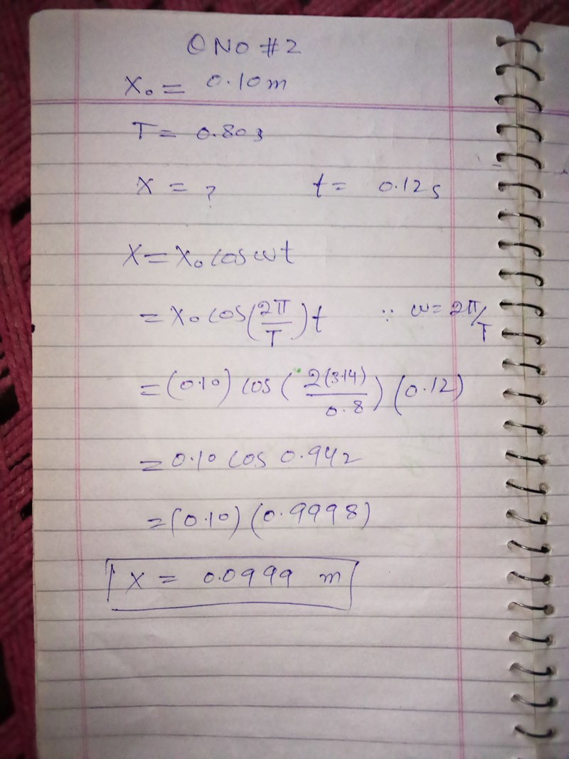 jag använder “y= A sin wt, w=(2 *pi / T)" för att hitta svaret och får 0,081 m.