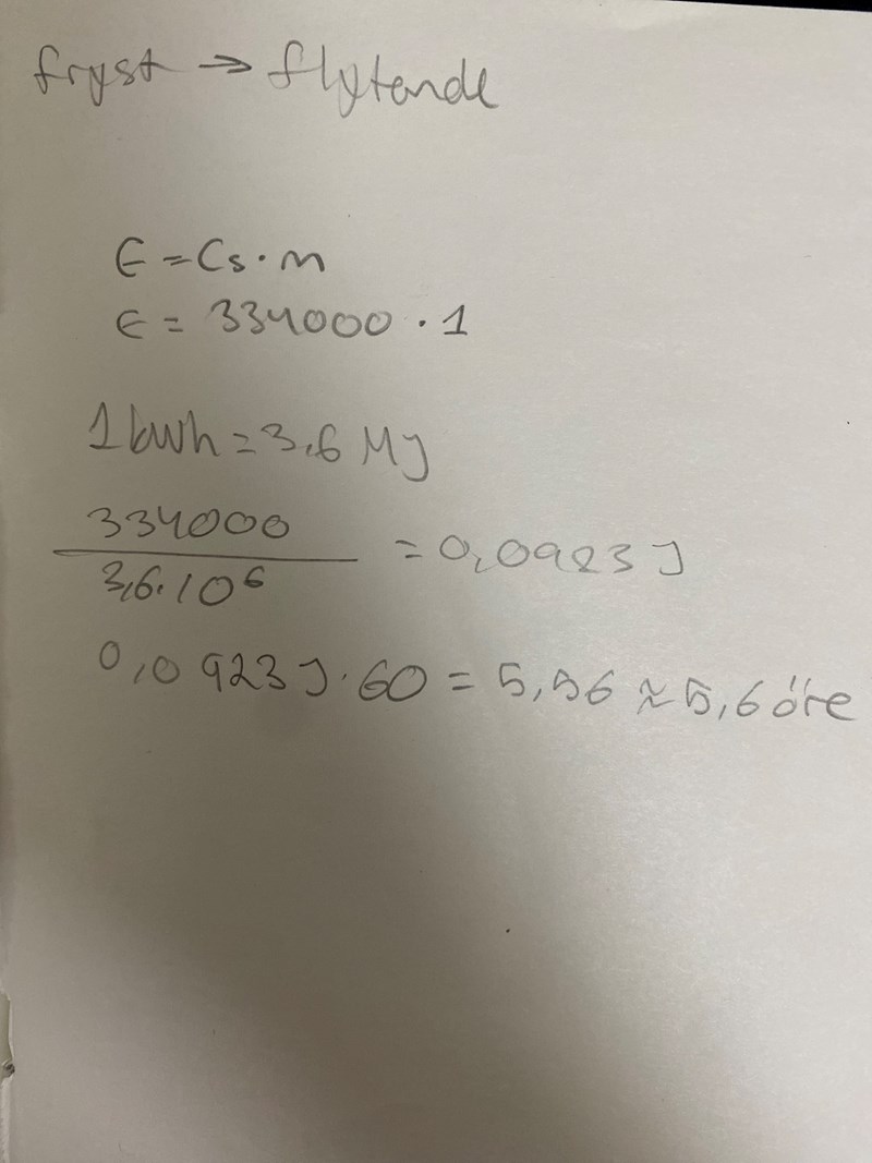 pepsi1968 skrev:Har du med energin som krävs vid 0 grader, Alltså att gå från is till vatten?
