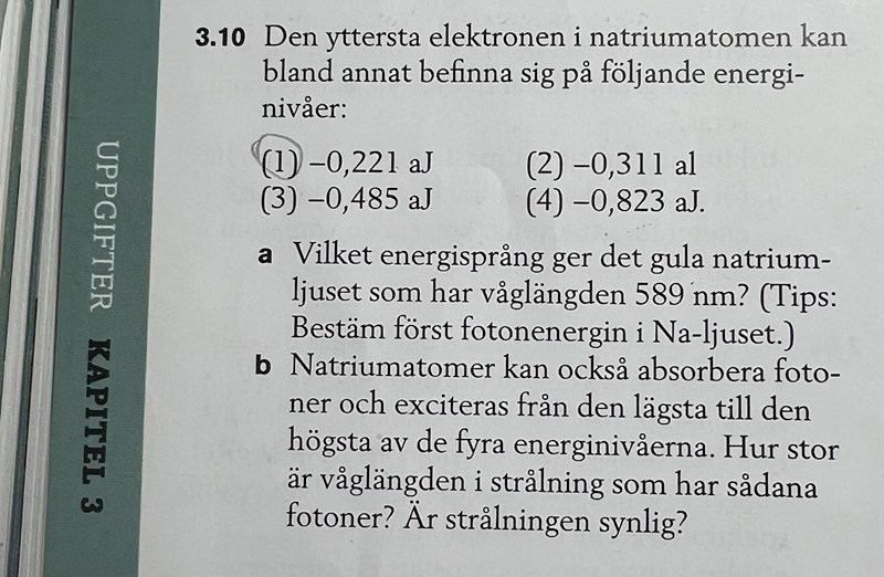 Tror bara det är så att i många tabeller/uppgifter är energierna angivna med negativa värden eftersom energin nollställs ute i vakuum. En högre energinivå ligger ”mindre negativt” än en lägre. Om du explicit tar absolutbeloppet för att slippa teckendiskussionen och istället håller reda på vem som är "initial nivå" och vem som är "slutnivå" så blir det rätt iaf...