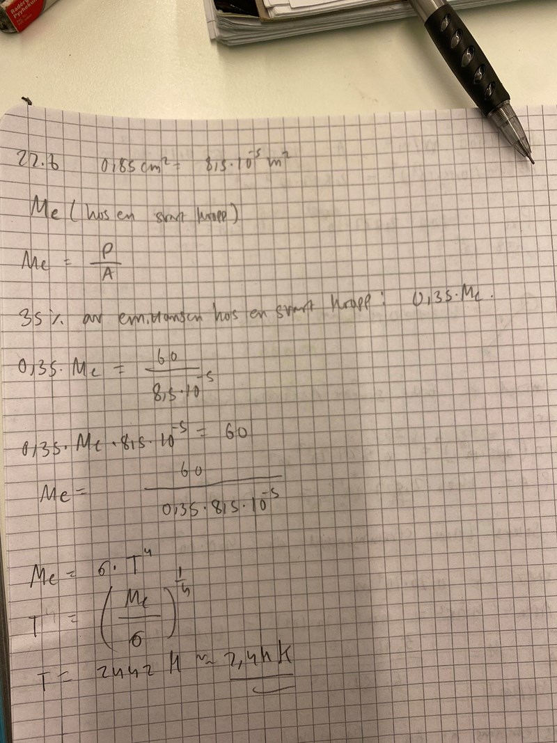 Hej! Jag undrar varför jag fick fel svar på uppgiften? Svaret är 2400 K. Svar hade uppskattar oerhört mycket!