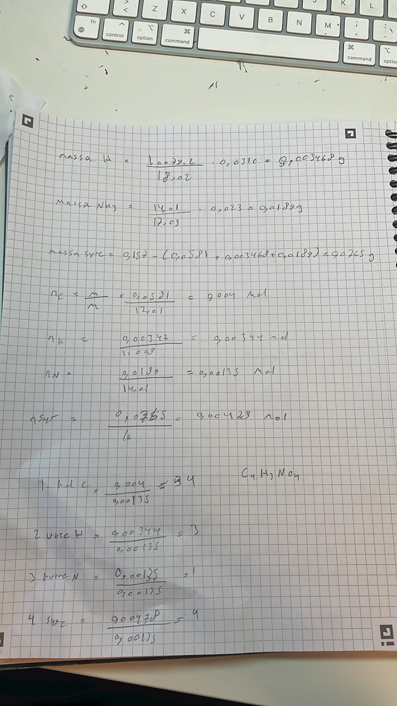 A compound contains only carbon, hydrogen, nitrogen, and oxygen. Combustion of 0.157 g of the compound produced 0.213 g of CO2 and 0.0310 g of H2O. In an- other experiment, 0.103 g of the compound produced 0.0230 g of NH3. What is the empirical formula of the compound? Hint: Combustion involves reacting with ex- cess O2. Assume that all the carbon ends up in CO2 and all the hydrogen ends up in H2O. Also assume that all the nitrogen ends up in the NH3 in the second experiment.